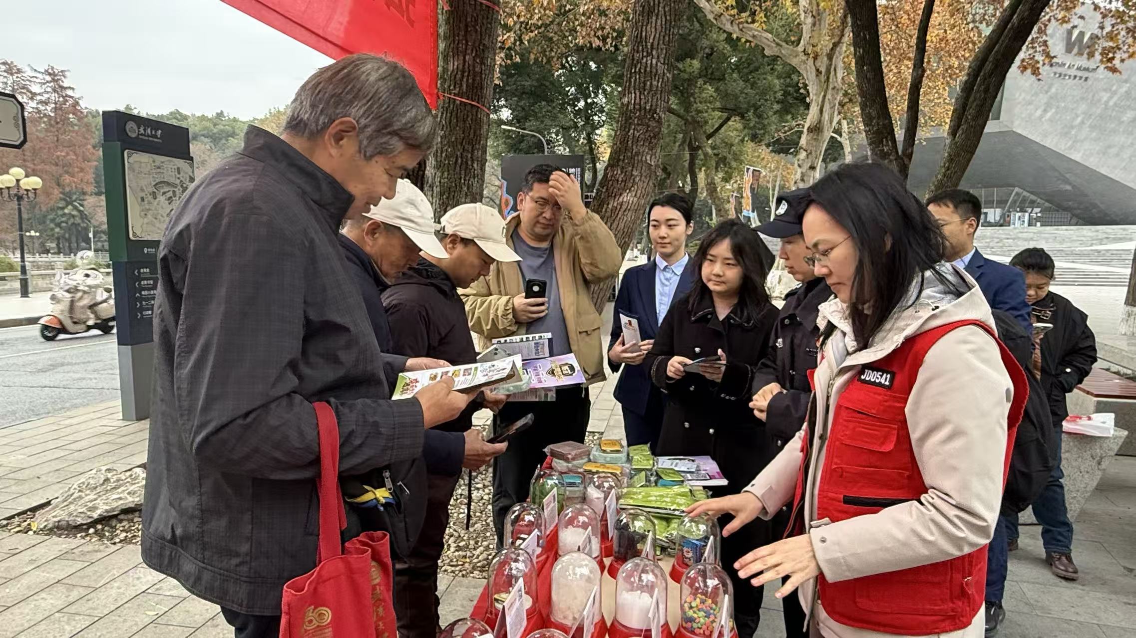 12月4日,武昌区珞珈山街道联合武汉大学保卫部,在武汉大学万林艺术博物馆前组织开展“弘扬宪法精神,筑牢保密防线”法规宣传活动,面向在校师生与周边居民普及保密法律知识,增强全民保密意识。